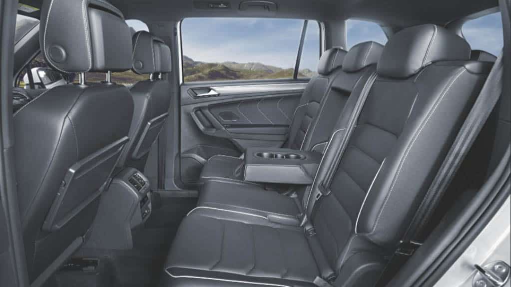 Já a versão intermediária, o Tiguan Allspace Comfortline 250 TSI, que tem sete assentos de série, conta também com vários outros equipamentos de tecnologia. O modelo traz aplicações decorativas acinzentadas e revestimento dos bancos de couro (os dianteiros são aquecíveis). No exterior, há vários elementos cromados, como a parte superior do farol, barra de teto, a grade frontal, frisos laterais, contorno das janelas e as molduras das saídas de escapamento. Os faróis são em LED e têm luzes diurnas de condução (DLR) também em LED. As rodas são de liga leve estilo “Kingston” de 18 polegadas (pneus 235/55 R18).